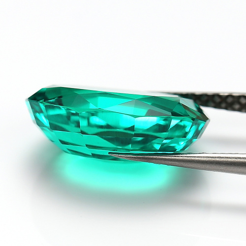 Ces processus donnent des émeraudes ayant le même indice de réfraction, la même dureté et la même structure cristalline que les pierres naturelles. Cela leur permet d'être taillées, polies et serties en utilisant les mêmes techniques que celles appliquées aux émeraudes extraites.